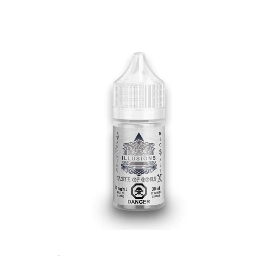 Illusions Taste Of Gods X Salt Nic est disponible en bouteilles de 30 ml et en mélange de sels de nicotine 50VG / 50PG.