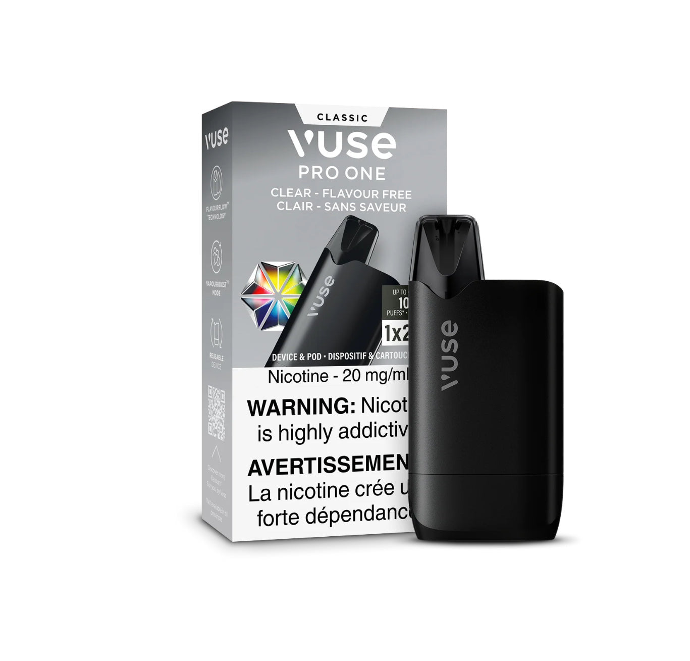 Vuse Pro One Device & Pod 1K Clear-Flavour Free 20mg/ml (Provincial)